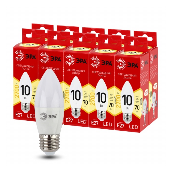 Энергосберегающая LED лампочка свеча мощностью 10 Ватт с цоколем E27 теплый свет Б0052377