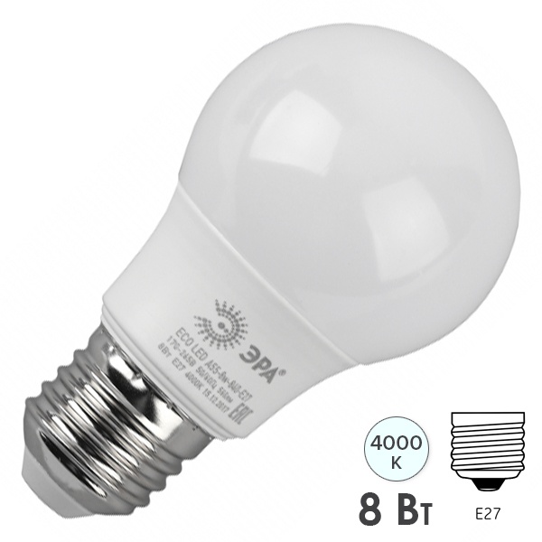 Энергосберегающая LED лампа Груша мощностью 8 Вт с цоколем E27 белого света Б0052382