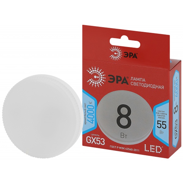 Лампа светодиодная таблетка ЭРА RED LINE GX 8W 840 4000K 220V GX53 холодный свет Б0052657