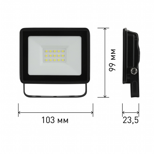 Прожектор светодиодный уличный с высоким световым потоком. Корпус -черный, изготовлен из прочного алюминия, стекло закаленное. Экономичная LED-технология сократит до 90% затрат на электроэнергию. Прожектор устойчив к механическим воздействиям, защищен от дождя и пыли, работает при широком диапазоне температур (от -40 до +45). Отличается простой и быстрой установкой: есть кронштейн специальной формы и регулировочные болты для выбора направления света. Подходит как для внутреннего, так и для наружного применения.
