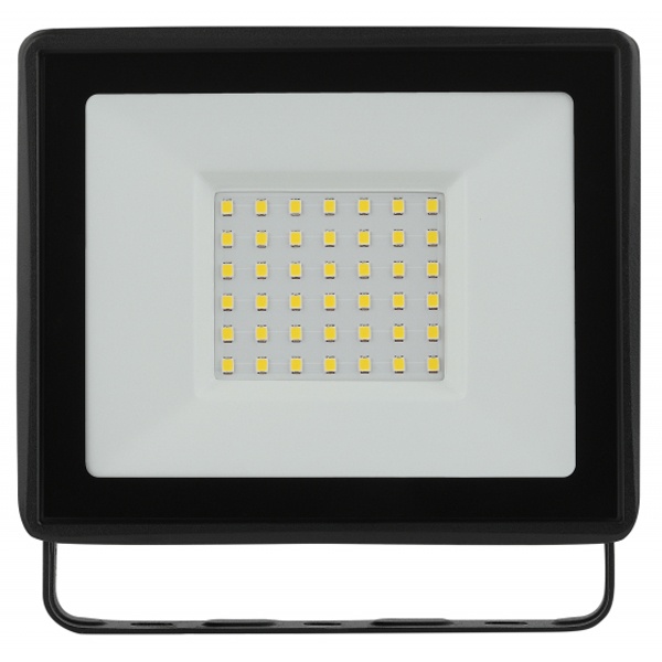 Черный компактный влагозащищенный LED прожектор Эра мощностью 50 Ватт с крепежной скобой, теплого белого свечения. Б0052859