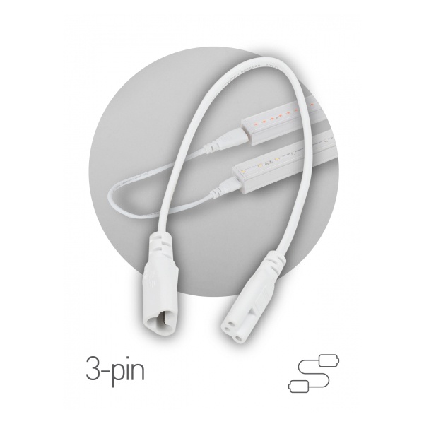 Двужильный кабель для соединения линейных светильников серии Fito Т5-N и Т5-Ra90, длиной 33 см. Кабель 2х05 мм2, тип кабеля ПВС. Тройной штекер на двойной разъем.