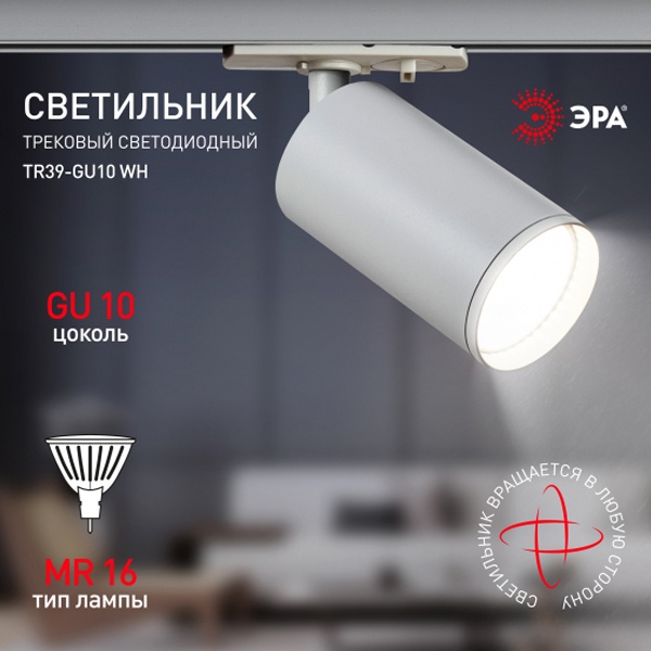 Б0053309 Светильник трековый однофазный ЭРА TR39-GU10 WH под лампу MR16 белый
