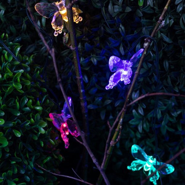 Садовая гирлянда Бабочки для декоративной подсветки, длина 5,8 метров, разноцветное свечение, питание от солнечной батареи Б0053364
