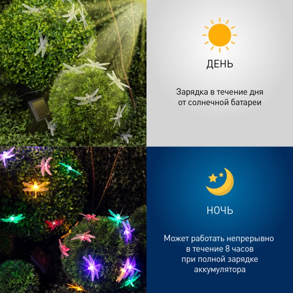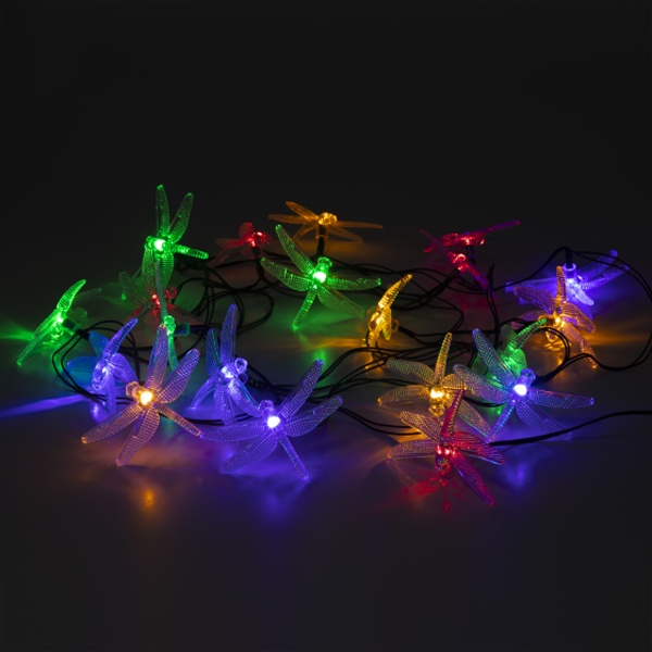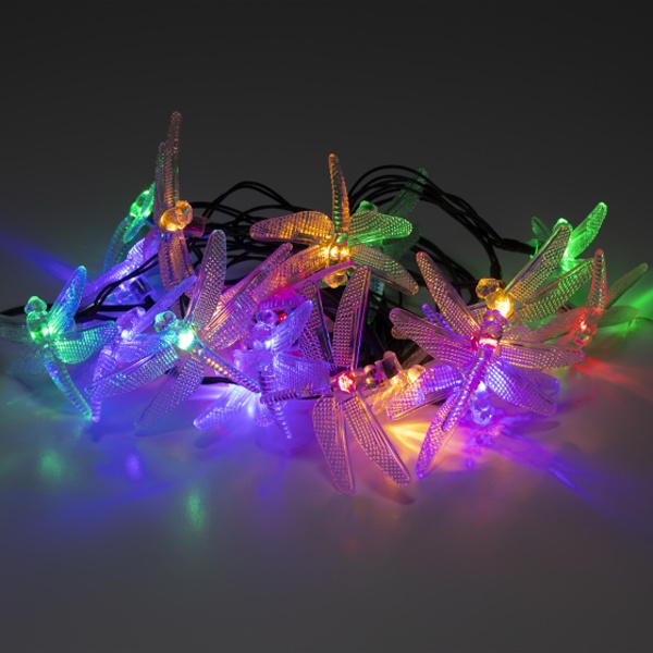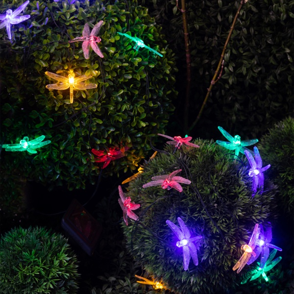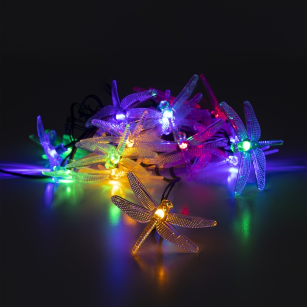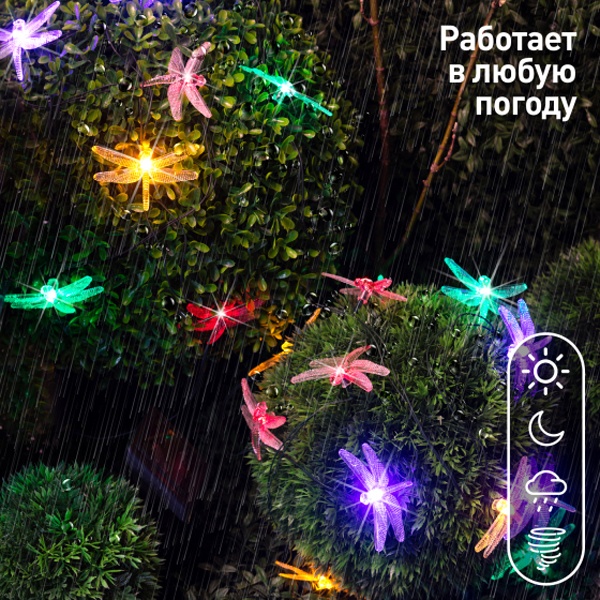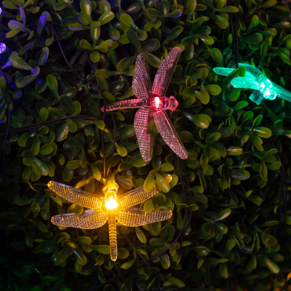 Садовая гирлянда Стрекозы для декоративной подсветки, длина 5,8 метров, разноцветное свечение, питание от солнечной батареи Б0053365