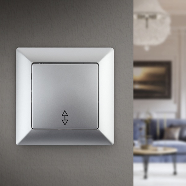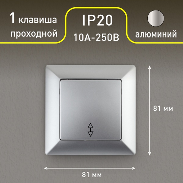 Одноклавишный проходной выключатель для скрытого монтажа в сухих помещениях, алюминиевого цвета, Intro серии Solo. Б0053579