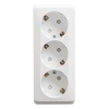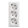 Электрическая розетка немецкого стандарта на три поста, выполнена из негорючего белого пластика с латунной контактной группой для обеспечения хорошего контакта. Используется для открытого монтажа как горизонтальной так и вертикальной установки, степень защиты IP20 позволяет использовать ее только в сухих помещения таких как квартира, офис, магазин.