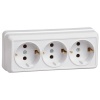 Электрическая внешняя белая розетка Интро тройная силовая 16А электросети 220В IP20 открытой установки на стену Б0053819