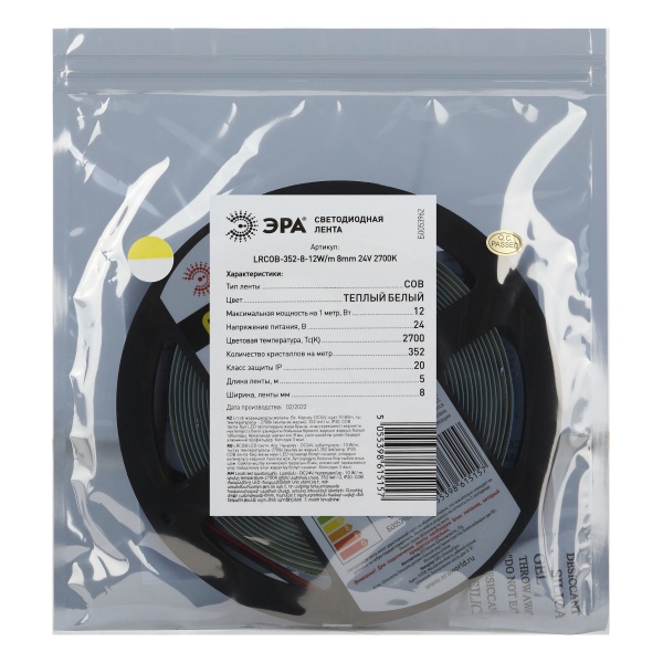 Светодиодная лента мощностью 12 Вт/м длиной 5 метров теплого света, напряжением 24 Вольта Б0053962