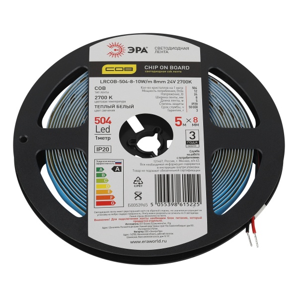 Лента изготовлена по технологии COB, что обеспечивает равномерное свечение без видимых светодиодов. Монтаж очень простой — лента крепится к любой гладкой поверхности при помощи двустороннего скотча на обратной стороне.