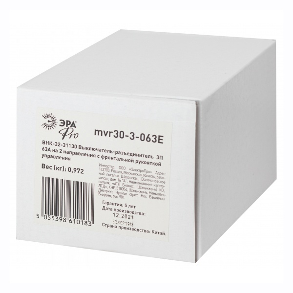 Выключатель-разъединитель ВНК-32-31130 PRO mvr30-3-063E 3П 63А на 2 направления с фронтальной рукояткой управления Эра Б0054012