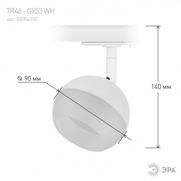 Б0054152 Светильник трековый однофазный ЭРА TR46-GX53 WH под лампу GX53 белый
