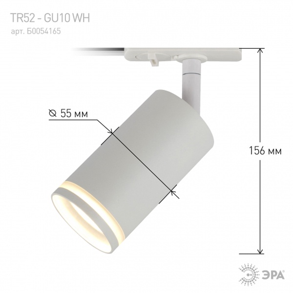 TR52 – однофазный трековый светильник, предназначенный для использования с лампами с цоколем GU10. Светильник имеет акриловое кольцо на корпусе, которое наполняется светом от лампы, а также скрытый трековый адаптер, утапливаемый в шинопровод.