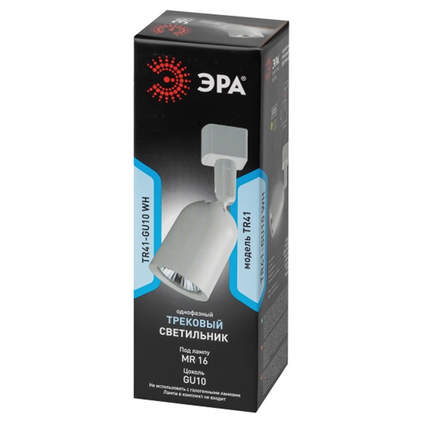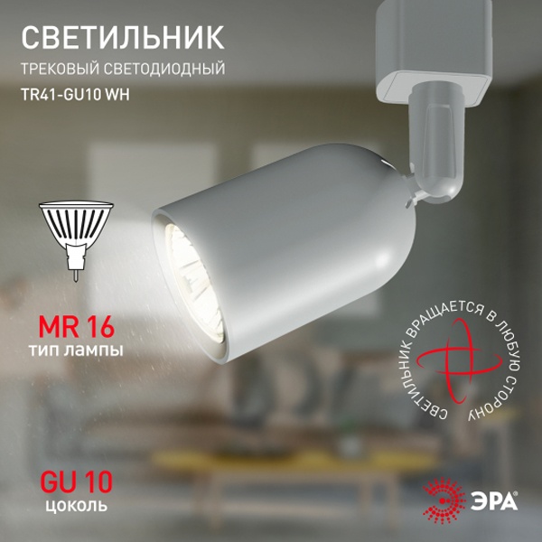 • Светильник трековый однофазный ЭРА TR41-GU10 WH под лампу MR16 белый