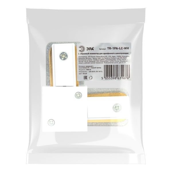 Угловой соединитель для 1-фазного токопровода ЭРА белого цвета Б0054465