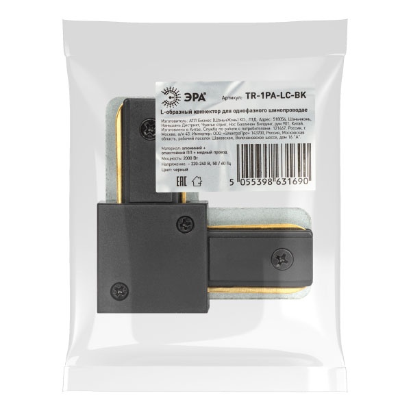 Угловой соединитель для 1-фазного токопровода ЭРА черного цвета Б0054466