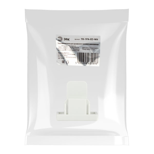 Торцевая пластиковая крышка для 1-фазного токопровода ЭРА белого цвета Б0054477