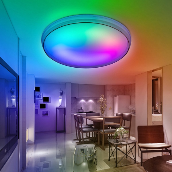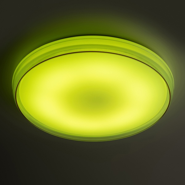 Серии Solar RGB отличается возможностью регулирования яркости светового потока и цветовой температуры. Пульт дистанционного управления имеет крупные кнопки с подсказками, очень удобен в использовании. Светильник можно расположить в уютной гостиной и менять яркость освещения в зависимости от настроения или необходимости. Цветовая температура регулируется в пределах от 3000 К до 6000 К. Диаметр корпуса составляет 50 см. Рассеиватель выполнен в виде сочетания белой матовой части и боковых сторон «под хрусталь» - изящно и утонченно. На стальном корпусе основания располагается светодиодная плата, оснащенная современным и надежным драйвером. Модель снабжена функцией RGB, позволяющую увидеть привычные вещи в необычных цветовых решениях.