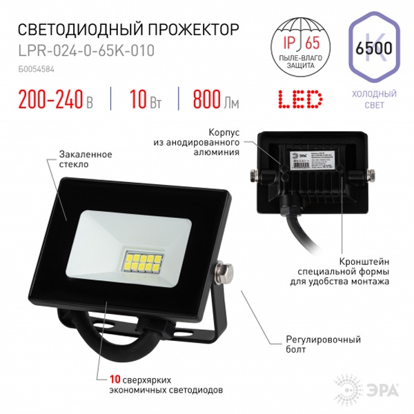 Прожектор светодиодный уличный с высоким световым потоком. Корпус - черный, изготовлен из прочного алюминия, стекло закаленное. Экономичная LED-технология сократит до 90% затрат на электроэнергию. Прожектор устойчив к механическим воздействиям, защищен от дождя и пыли, работает при широком диапазоне температур (от -40 до +45). Отличается простой и быстрой установкой: есть кронштейн специальной формы и регулировочные болты для выбора направления света. Подходит как для внутреннего, так и для наружного применения.
