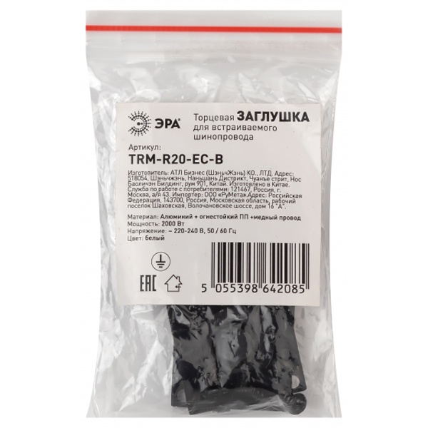 Заглушка ЭРА TRM-R20-EC-B торцевая для встраиваемой магнитной системы освещения NOVA TRM-R20 от крупнейшей на Российском рынке торговой марки "ЭРА". Компания "ЭРА" производит довольно качественную продукцию за не плохую цену. В комплекте идут 4 самореза, сделанных из прочного металла, то есть крепление к шинопроводу будет очень прочным и две пластмассовые торцевые крышки для обеих сторон трековой системы освещения. Заглушка сделана из высокопрочного ABS пластика изготовленного по специальной технологии и предназначена для того, чтобы скрыть отверстие у шинопровода и сделать ровную боковую сторону, в местах , где магнитная трековая система не будет иметь продолжение. Имеет черный цвет корпуса, поэтому убедитесь, что ваша осветительная композиция тоже была выполнена в черном цвете, чтобы гармонично вписываться в дизайн проект. Обязательно пригодится в помещениях, у которых часто открыты окна или двери, так как если пыль попадет в токопровод, то может помешать его работе, тем самым вызвав короткое замыкание или того хуже пожар. Чтобы все это избежать нужно лишь не забывать приобрести заглушку для магнитной трековой системы освещения TRM-R20-EC-B популярного бренда "ЭРА". С ее помощью удастся избежать загрязнения токоведедущих частей и продлить срок его службы. Заглушка подходит только для встраиваемых систем освещения НОВА TRM-R20.