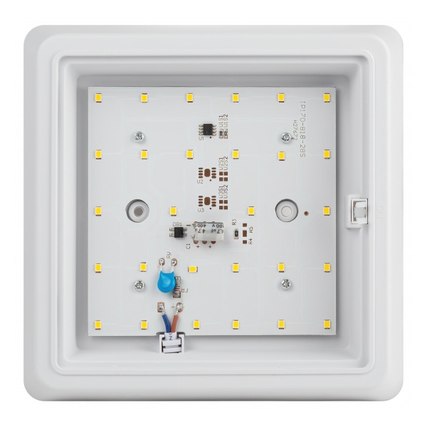 Пылевлагозащищённый, квадратный, накладной, светодиодный светильник мощностью 10 Ватт, нейтральный белый свет, c акустическим датчиком Б0055048
