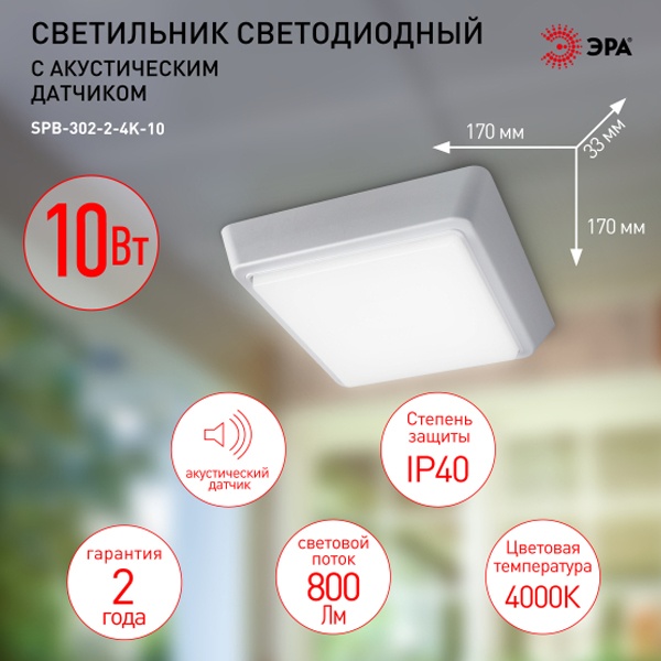 Светильник светодиодный ЖКХ SPB-302-2-4K-10 IP20 10Вт 4000К Эра Б0055048