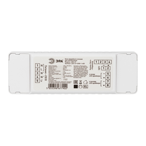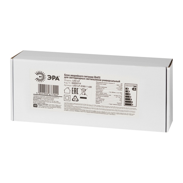 Итог: ЭРА БАП LED-LP-E300-1-400 — практичный блок аварийного питания на 400 V, обеспечивающий до 1 часа резервного освещения при мощности нагрузки до 300 W. Подходит для широкого спектра объектов, где требуется надежное аварийное освещение в помещениях с нормальными условиями окружающей среды.