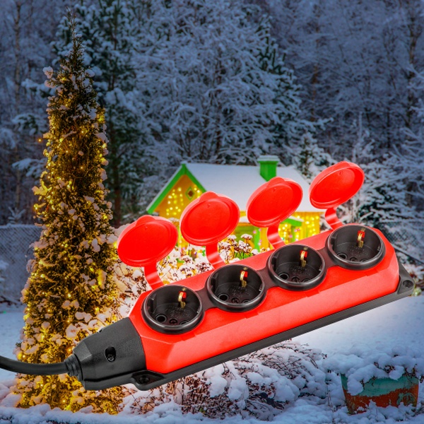 Удлинитель силовой UK-4e-3x1.5-30m-IP44(KG) с заземлением 4 розетки каучук 30м КГ 3х1.5кв.мм IP44 Эра Б0057588
