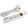 Удлинитель имеет три розетки, что позволяет подключить несколько устройств одновременно. Кабель длиной 5 метров обеспечивает удобство расположения удлинителя относительно электрической розетки.