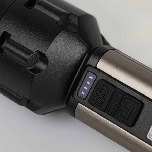 ЭРА UA-601 «Прометей» - аккумуляторный ручной фонарь с мощным 3-сегментным боковым светильником. Уникальный для российского рынка дизайн. Яркий головной луч (1 SMD-светодиод) дальностью до 200 метров помогает качественно освещать дорогу или подсвечивать конкретные предметы. Боковой светильник, состоящий из 3 компактных, но очень ярких COB-матриц с инновационными микросветодиодами, формирует широкое заливающее освещение.