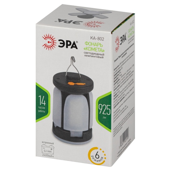 Кемпинговый LED фонарь ЭРА КА-802 «Комета», 6 режимов работы, Li аккумулятор 2400 мАч Б0058229
