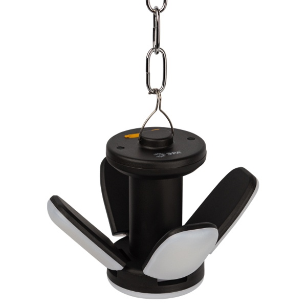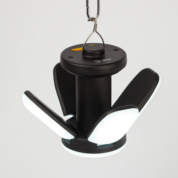 ЭРА КА-802 «Комета» - компактный и лёгкий фонарь-светильник линейки кемпинговых фонарей торговой марки ЭРА. Новый светодиодный фонарь имеет конструкцию трансформера и позволяет организовать полноценное походное освещение на привале. Угол наклона каждого из 4 светодиодных модулей можно регулировать, качественно подсвечивая определённые зоны пространства. В полураскрытом варианте, делающем LED-фонарь похожим на комету, ЭРА КА-802 формирует широкое заливающее освещение, в раскрытом – более направленную яркую подсветку. Вариант со сложенными светодиодными модулями – это уютный настольный светильник для кемпинга.