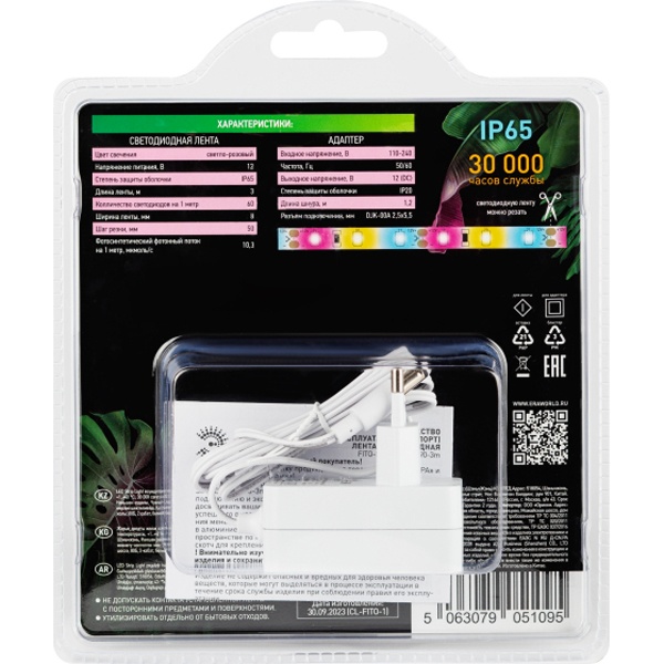 LED лента полного спектра для растений на двустороннем скотче с блоком питания Б0059881