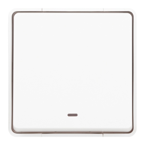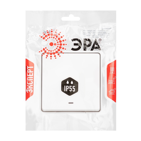 Влагозащищеный одноклавишный проходной выключатель с индикацией Эра серии Эксперт накладного монтажа 10 ампер на 230 Вольт, цвет белый Б0063255