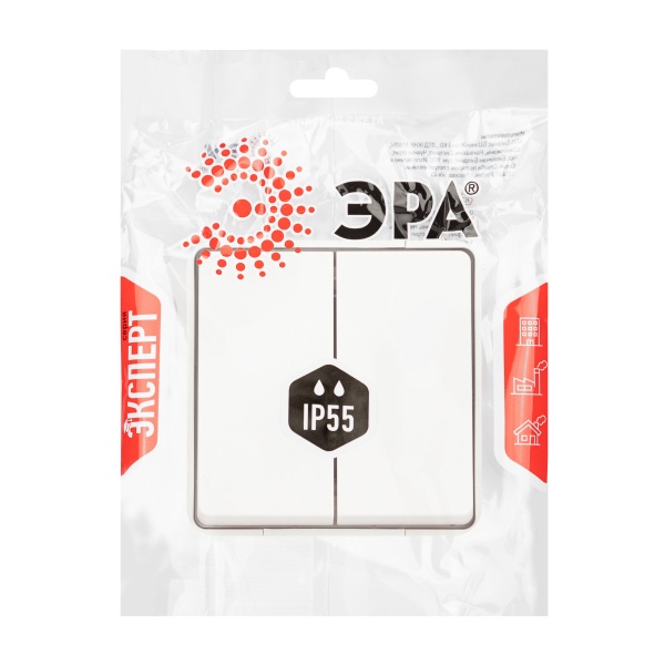 Влагозащищеный двухклавишный выключатель Эра серии Эксперт накладного монтажа 10 ампер на 230 Вольт, цвет белый Б0063257