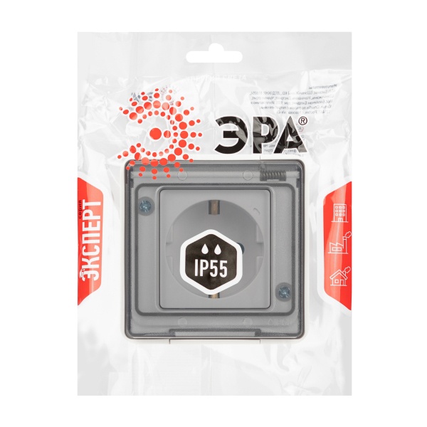 Розетка одноместная IP65 со шторками серии Эра Эксперт открытой установки IP55 цвет белый. Номинальные характеристики 16А 250В. Устройство выполнено из качественного поликарбоната, оснащёно уникальными винтовыми клеммами для максимально качественного зажима кабеля в механизме.