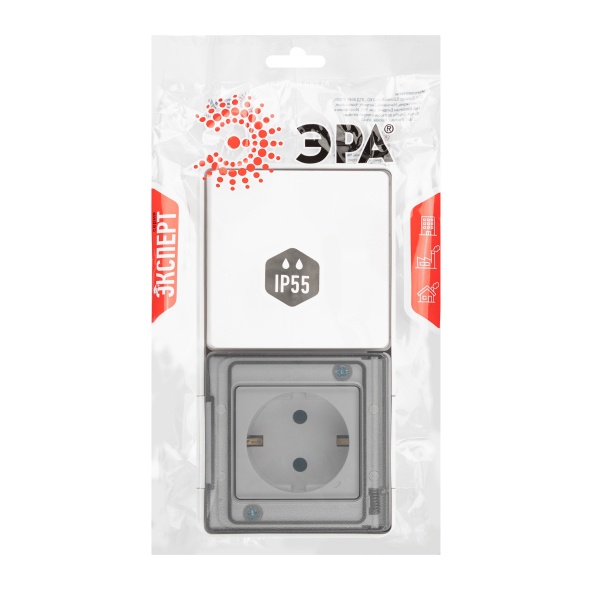 Влагозащищенная розетка с одноклавишным выключателем в одном корпусе Эра Эксперт накладного монтажа, цвет белый Б0063288