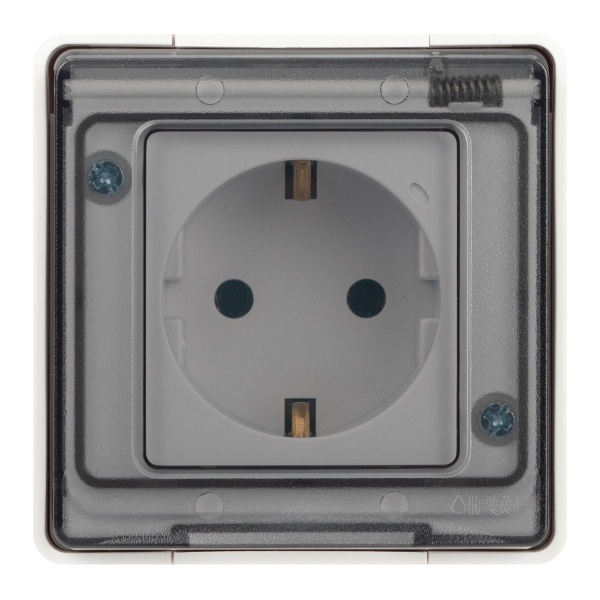 Розетка одноместная IP65 со шторками серии Эра Эксперт открытой установки IP55 цвет белый. Номинальные характеристики 16А 250В. Устройство выполнено из качественного поликарбоната, оснащёно уникальными винтовыми клеммами для максимально качественного зажима кабеля в механизме.