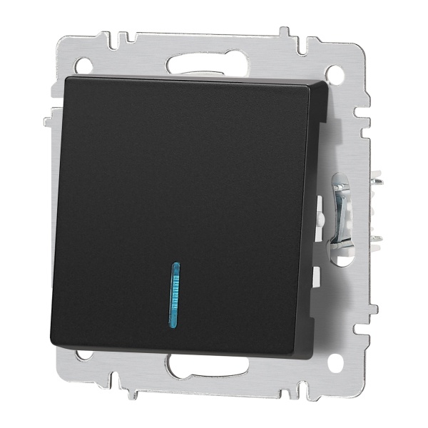 1-клавишный выключатель с индикацией скрытой установки Интро Акцент цвет антрацит Б0063431