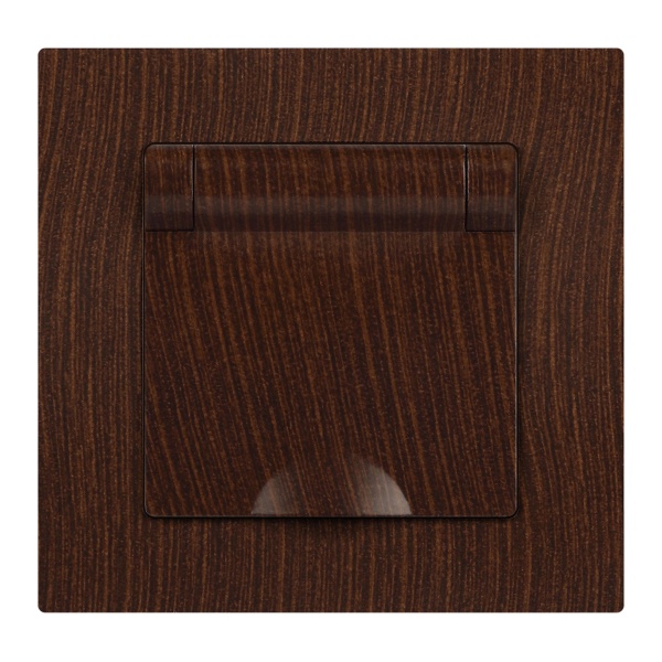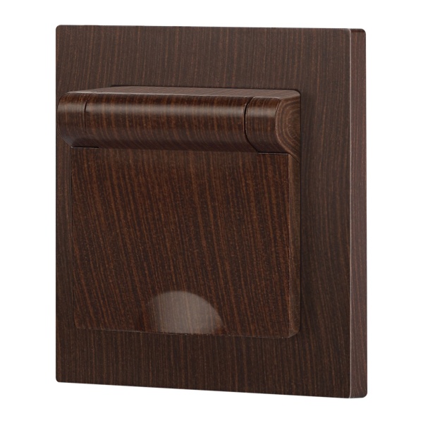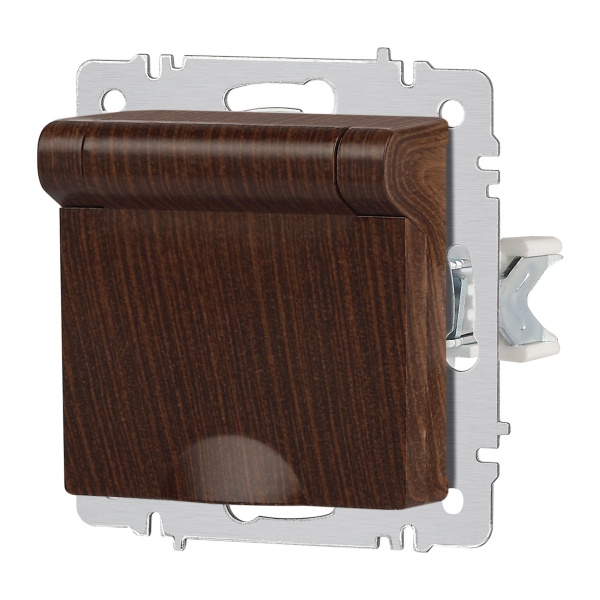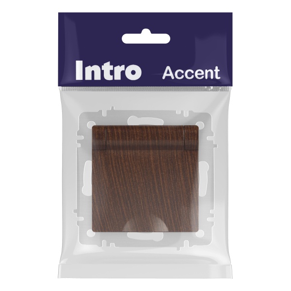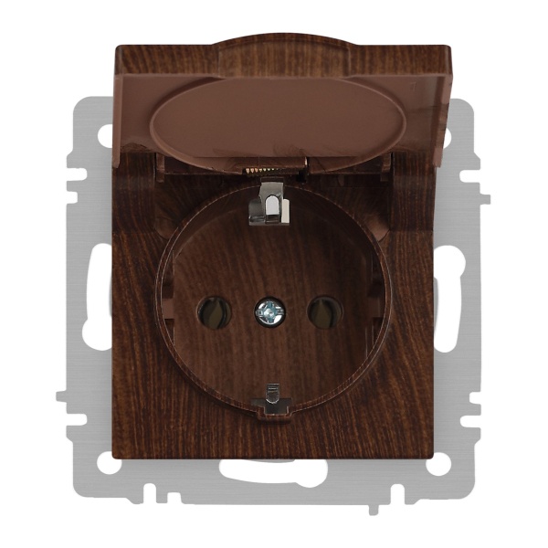 Встраиваемая электрическая розетка Интро Акцент с заземляющим контактом и крышкой, цвет венге Б0063454