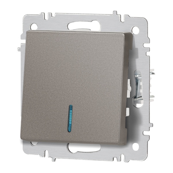 1-клавишный выключатель с индикацией скрытой установки Интро Акцент цвет титан Б0063460