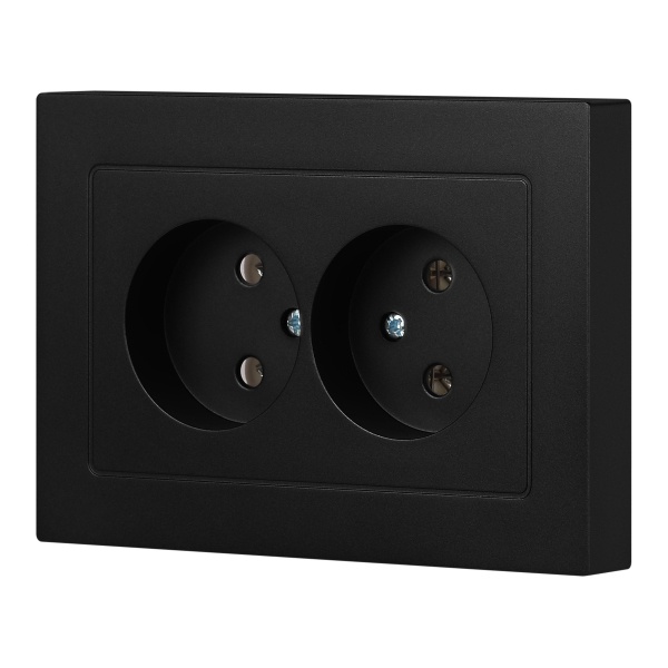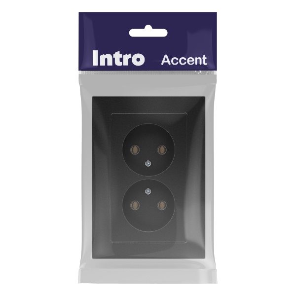 Встраиваемая двухполюсная двойная электрическая розетка Интро Акцент, цвет антрацит Б0063465