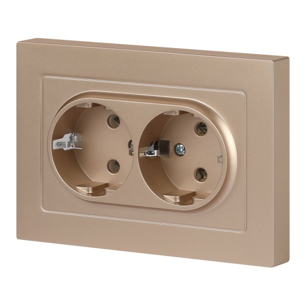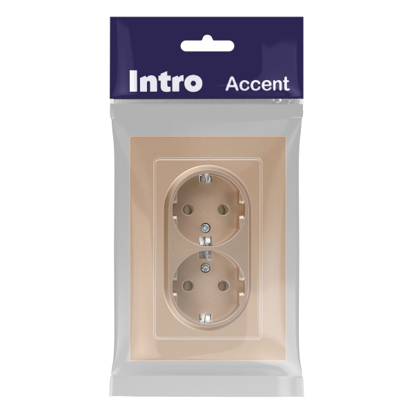 Встраиваемая двойная электрическая розетка Интро Акцент с заземляющим контактом, цвет шампань Б0063492