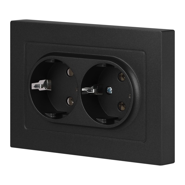 Встраиваемая двойная электрическая розетка Интро Акцент с заземляющим контактом, цвет антрацит Б0063494