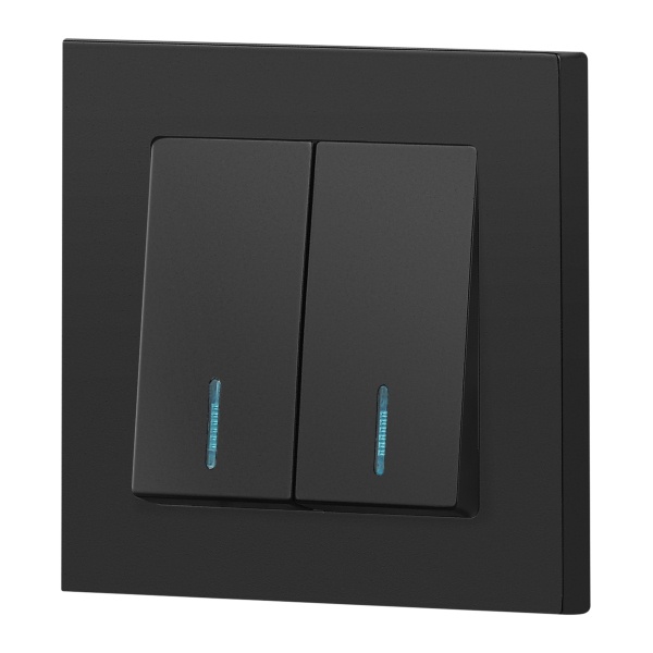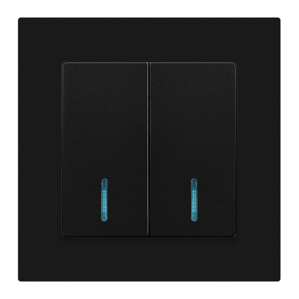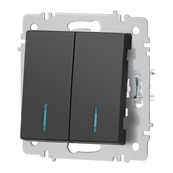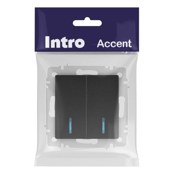 2-клавишный встраиваемый выключатель Интро Акцент с индикацией, цвет антрацит Б0063516