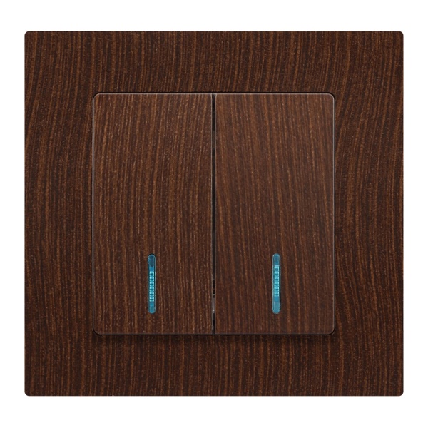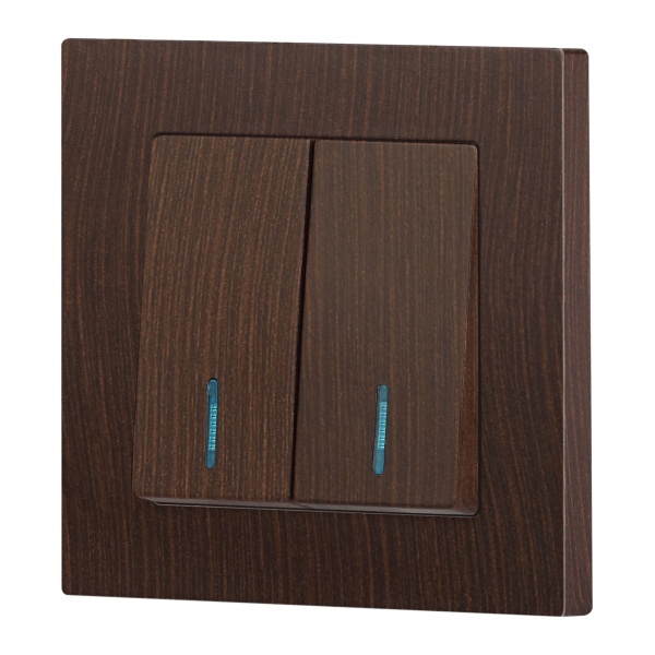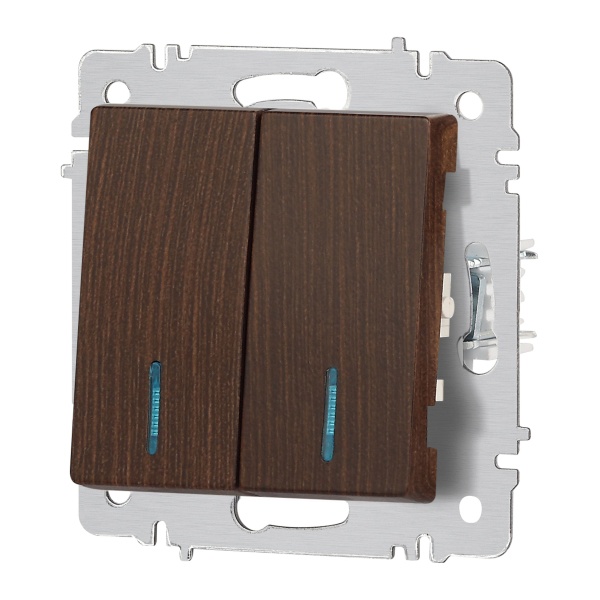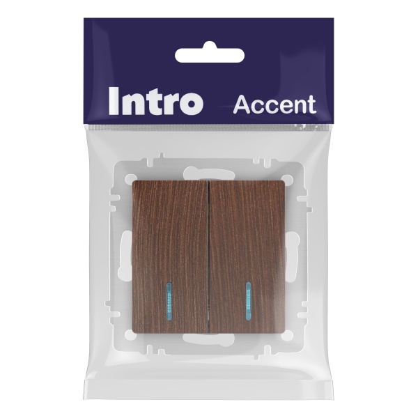 2-клавишный встраиваемый выключатель Интро Акцент с индикацией, цвет венге Б0063527