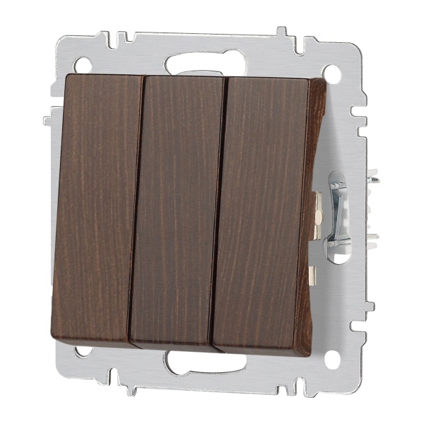 Встраиваемый 3-клавишный выключатель Интро Акцент, цвет венге Б0063550
