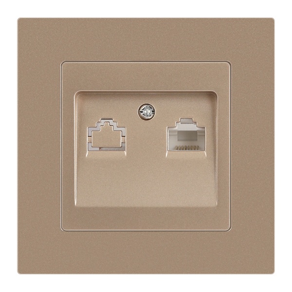 Встраиваемая однопостовая сетевая розетка RJ45 пятой категории Интро Акцент, цвет шампань Б0063632