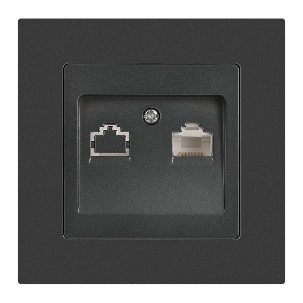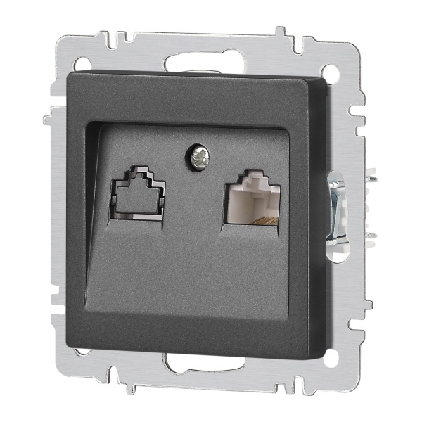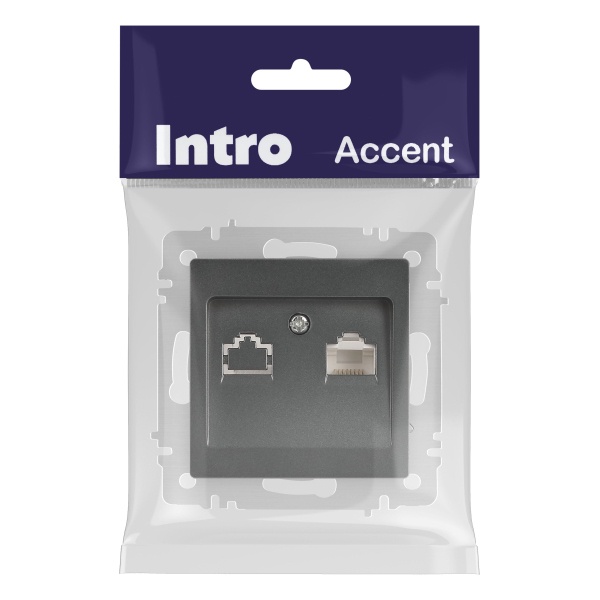 Встраиваемая однопостовая сетевая розетка RJ45 пятой категории Интро Акцент, цвет графит Б0063638