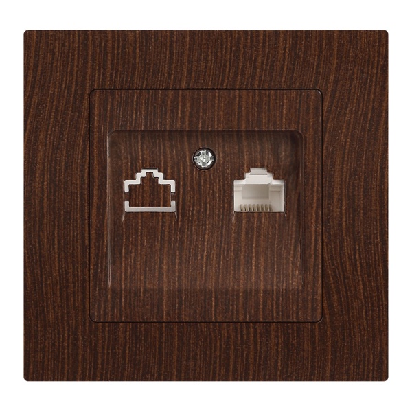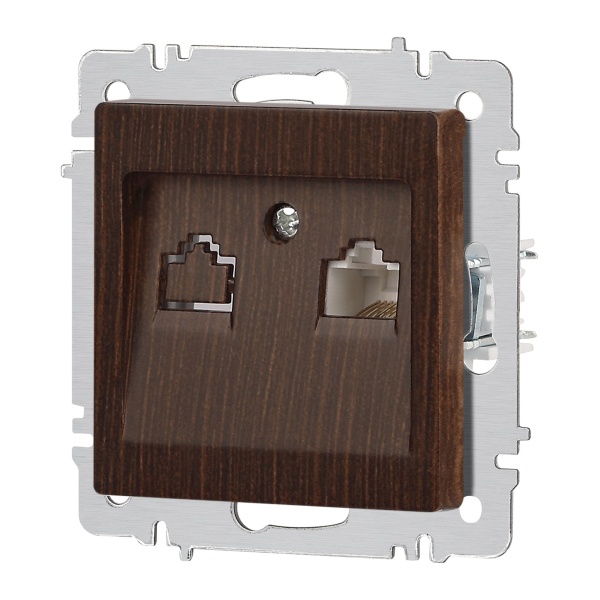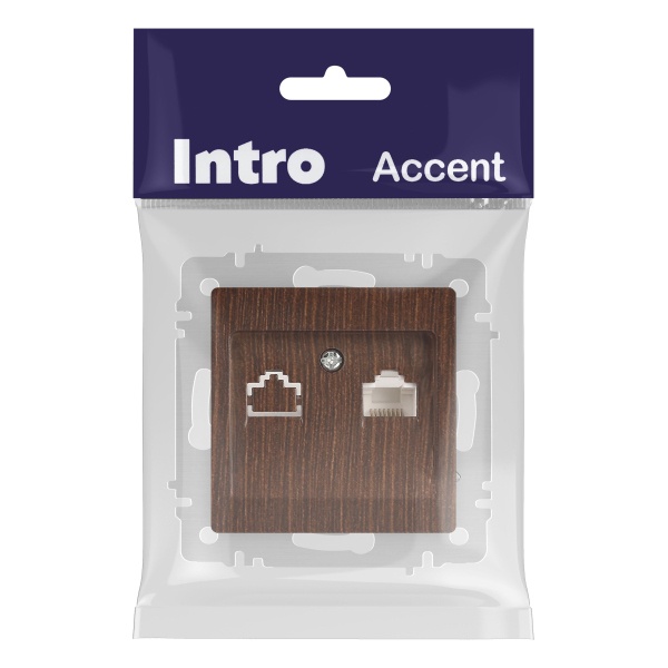 Встраиваемая однопостовая сетевая розетка RJ45 пятой категории Интро Акцент, цвет венге Б0063643